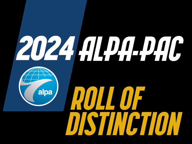 This is the longest list of ALPA-PAC donors ever. Overall, one quarter of ALPA members in the United States made a contribution to support the election of a pilot-partisan Congress to fight reduced-crew and single-pilot operations, defend safety and workers’ rights in the FAA reauthorization passed last year, and engage on key issues such as pilot mental health and aeromedical reforms at the FAA.