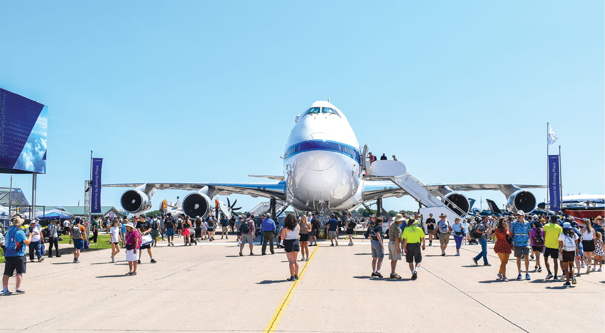 Meanwhile in Boeing Plaza, a variety of airplanes were showcased, including a Delta Air Lines Airbus A321neo, in special livery celebrating the carrier’s 100 years of operation. The following day, Alaska Airlines parked a Boeing B-737 MAX 8 in the same location, sporting a paint job acknowledging the contributions of military veterans and including the words, “Honoring Those Who Served.”