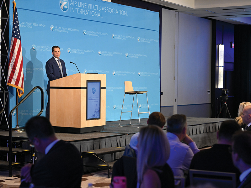 “We all have to take ownership of this and be a part of it,” said Sluys, who talked about the international Safety Starts with Two campaign led by ALPA, the European Cockpit Association, and the International Federation of Air Line Pilots’ Associations, along with pilots representing the Associations of Star Alliance Pilots, the Oneworld Cockpit Crew Coalition, and the SkyTeam Pilots Association. This worldwide campaign was initiated to ensure that the current standards, which have helped make aviation the safest form of transportation, aren’t eroded (see the June–July 2023 issue).