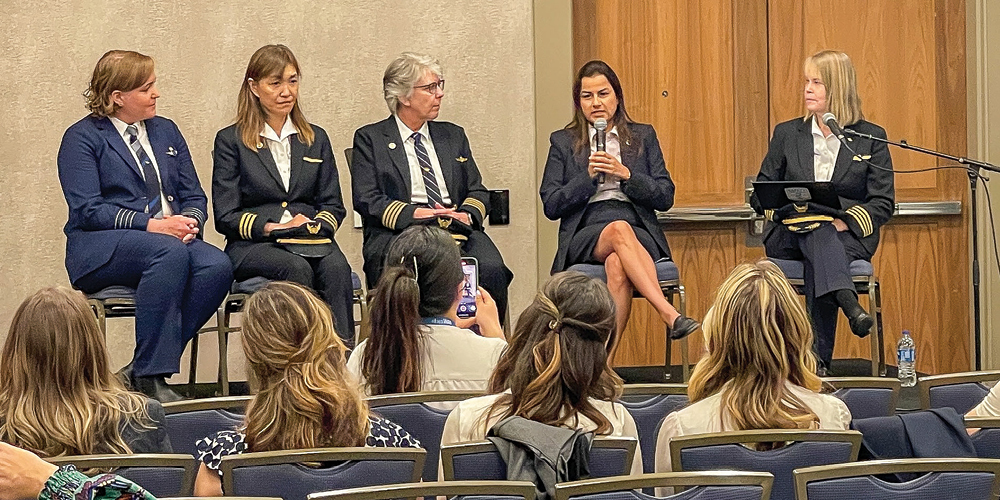 A highlight of the conference was the keynote panel discussion “Our Allies Speak Out,” which was moderated by WAI CEO Lynda Coffman. Ambrosi participated alongside other industry leaders, including Bart Roberts, executive director of Cirrus Aircraft, and F/O Titus Sanders (United), program chair of the Organization of Black Aerospace Professionals, for this timely discussion on maintaining high qualification standards in aviation while promoting diversity and the importance of mentorship and allyship in creating an inclusive industry.