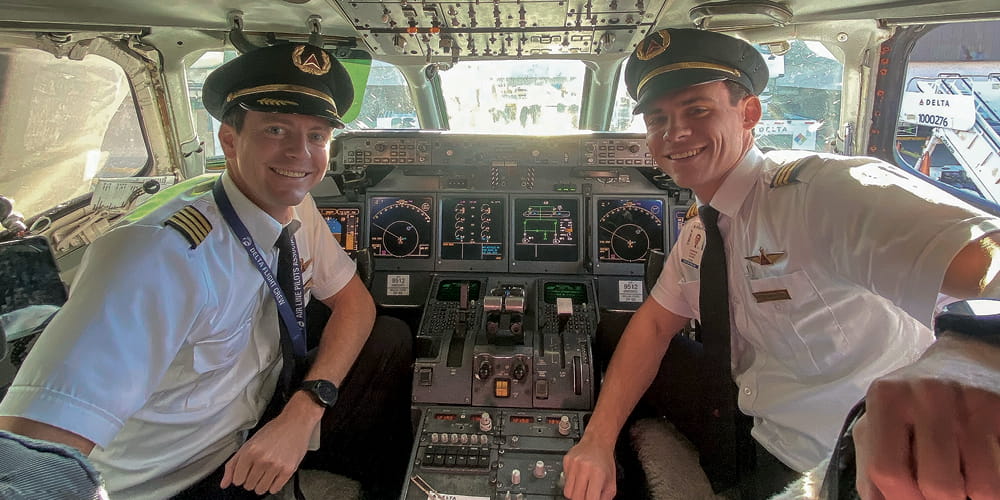 The family’s next milestone was a memorable one as well: Stephen and Andrew shared the flight deck for the first time in October 2024. With Stephen as captain and Andrew as his first officer, they flew a B-717 from Hartsfield–Jackson Atlanta International Airport to Piedmont Triad International Airport in Greensboro, N.C. It was a special occasion for our entire family having the two brothers fly a Delta aircraft together.