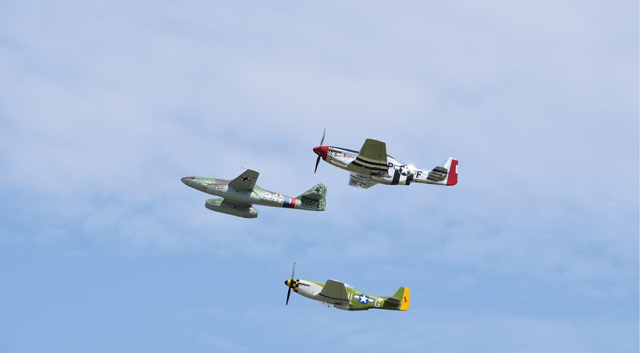 Numerous ALPA pilots flew vintage military aircraft including Capt. Jeff Linebaugh (FedEx Express), who piloted the Commemorative Air Force’s P-51 Mustang Gunfighter, together with a formation of Mustangs that included Yoak’s Quick Silver. Linebaugh later led these fighters in formations during the weekend air shows. Capt. Larry Lumpkin (United, Ret.) also flew Gunfighter during the week’s activities.