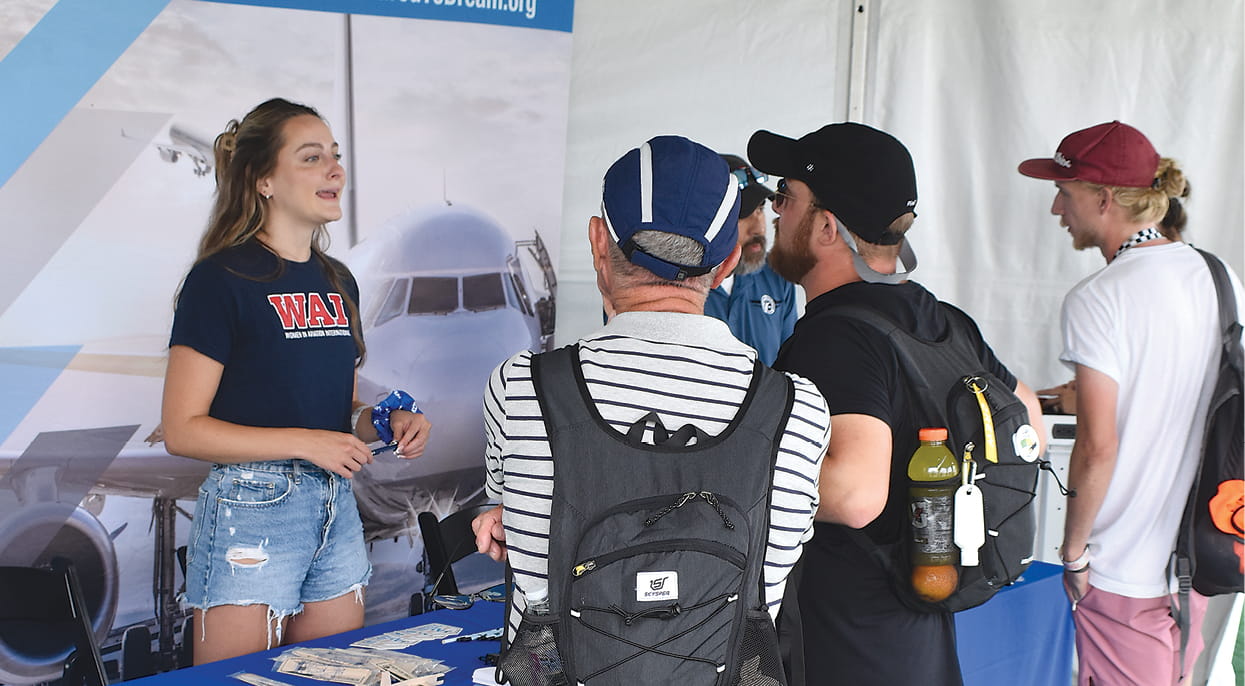Long before ALPA pilots and staff arrived at the Wittman Airport grounds, the Association developed a strategy to raise awareness. Elements included a dedicated public webpage (alpa.org/oshkosh) and geofencing activities to communicate the location of ALPA’s booth and highlight current union priorities. The Association promoted its presentations in the EAA AirVenture Today newspapers, on event presentations and workshops webpages, and in the official visitors’ guide, where ALPA also placed a full-page ad. In addition, the union cosponsored the EAA Runway 5K held that Saturday morning on the airport tarmac to broaden the Association’s visibility for those attending this year’s Oshkosh.