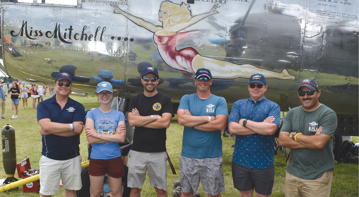 Another B-25, Miss Mitchell, served in the 57th Bomb Wing of the 12th Air Force in North Africa and Italy and completed more than 130 missions. Flying and crewing this historic aircraft this year were Capt. Nicholas Stolley (Sun Country), F/O Madeleine “Emmy” Dillon (Kalitta Air), Capt. Mike Mainiero (Kalitta Air), F/O Anthony Bowers (Delta), Capt. Andy Bredeson (Sun Country), and F/O Nicholas Kanakis (United).