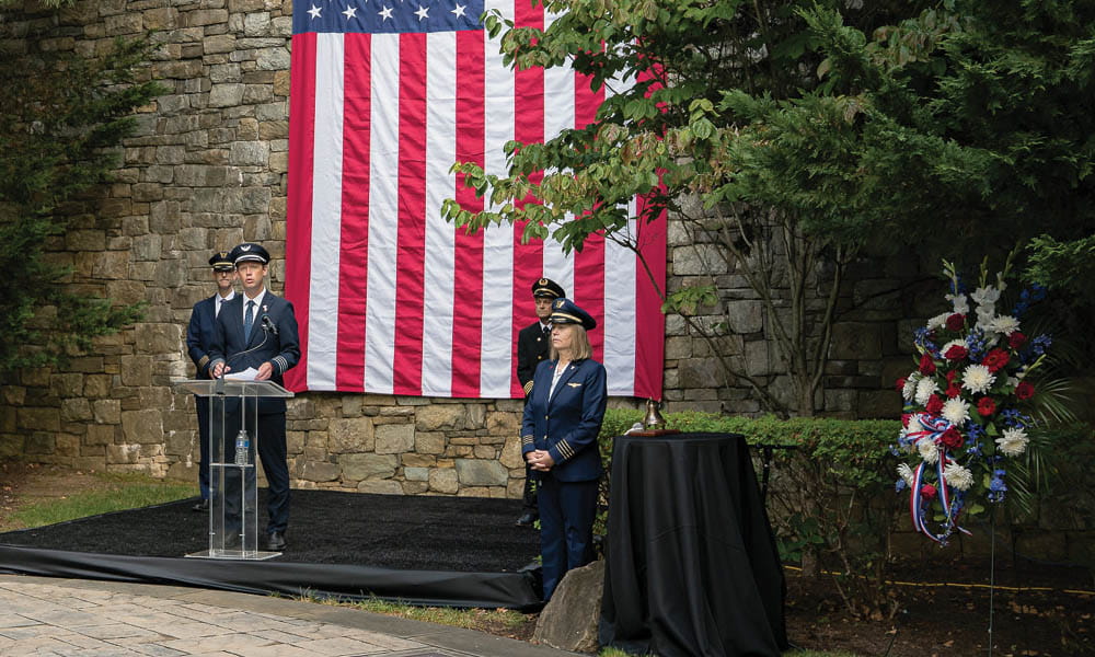 On Thursday, September 11, ALPA pilots and staff, flight attendants, and community members assembled in the Association’s Remembrance Garden in McLean, Va., to honor the crewmembers of American Flight 11, American Flight 77, United Flight 93, and United Flight 175 on the 24th anniversary of the 9/11 terrorist attacks. The event was also attended virtually by ALPA representatives at the Association’s 69th Air Safety Forum in Chicago, Ill.