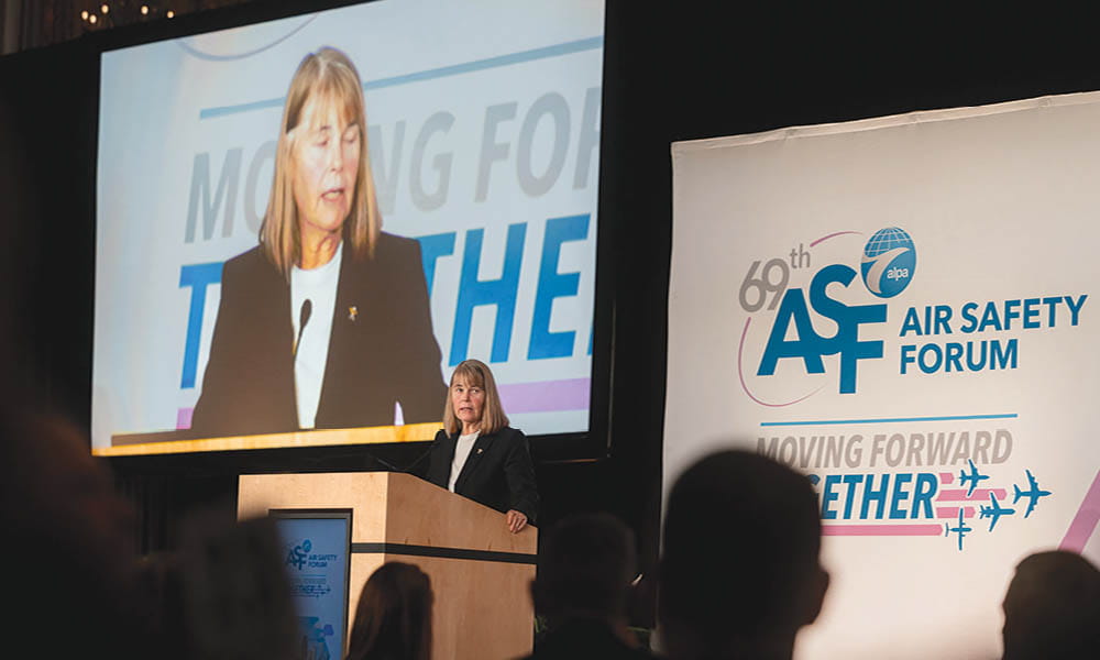 While the Air Safety Forum banquet is first and foremost a celebration of pilots and their contributions, it also provides ALPA with an opportunity to spotlight policy debates that shape the future of aviation safety and security. The awards shine a light on individual and collective achievements, but the event also underscores the critical issues that the Association continues to champion with lawmakers, at regulatory agencies, and in industry working groups.