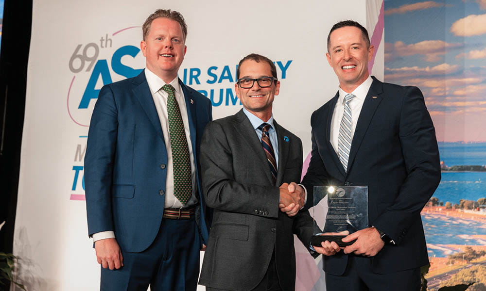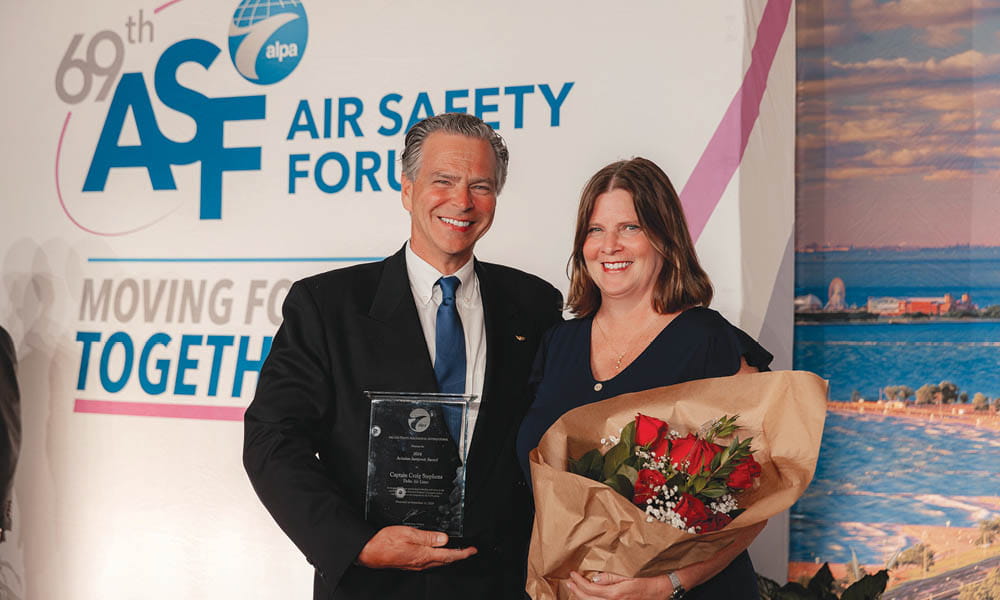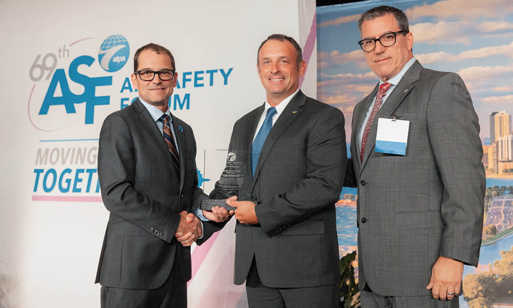 “There was no playbook for what we pulled off that night,” DeVries observed as he accepted the award for the crew. “And in the end, there was no checklist either. What we accomplished was a result of our experience levels and training. We didn’t ‘rise to the occasion,’ we fell to our training levels.” He added that the event underscores why “it’s critical that we as an industry maintain a multipilot flight deck. To think otherwise makes safety feel like nothing more than empty words that look good on a company poster.”