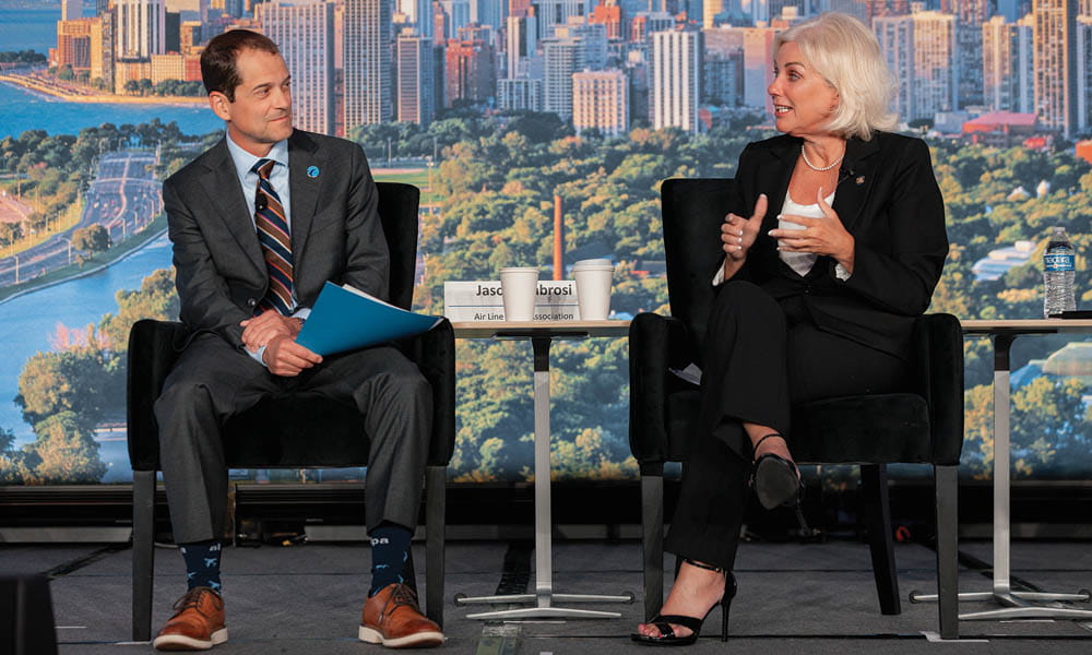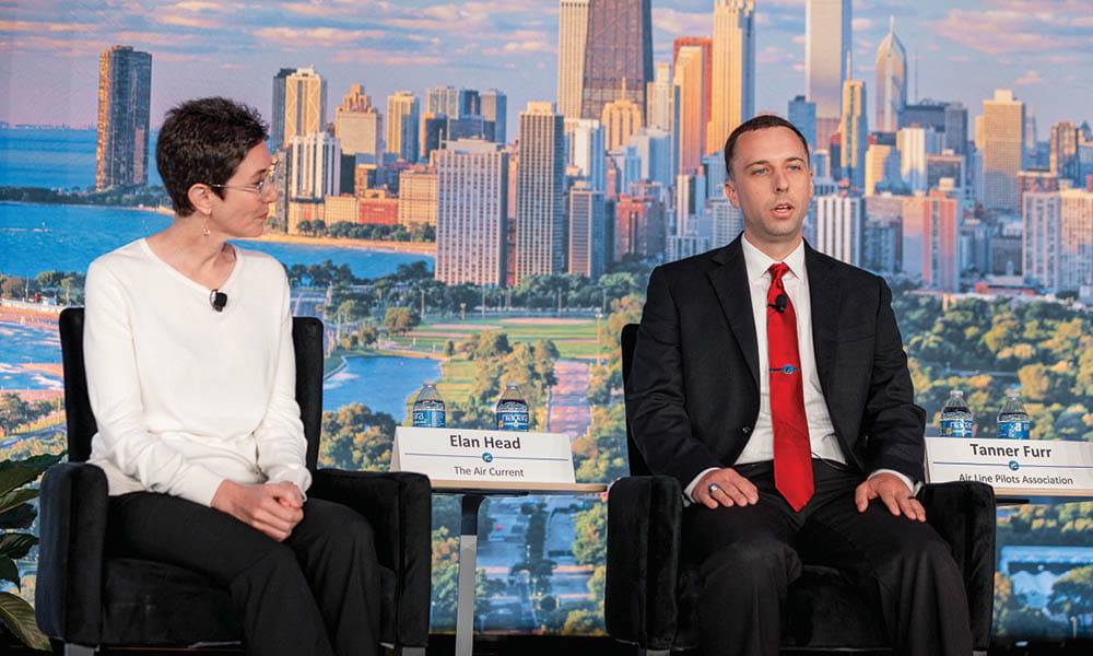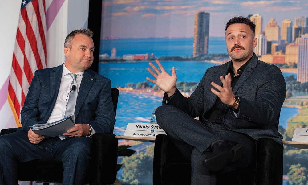 Ambrosi returned to the stage to lead a panel discussion with aviation industry labor leaders. Joining him for this discussion were Sara Nelson, president of the Association of Flight Attendants-CWA; Nick Daniels, president of the National Air Traffic Controllers Association (NATCA); and Dave Spero, president of the Professional Aviation Safety Specialists (PASS).