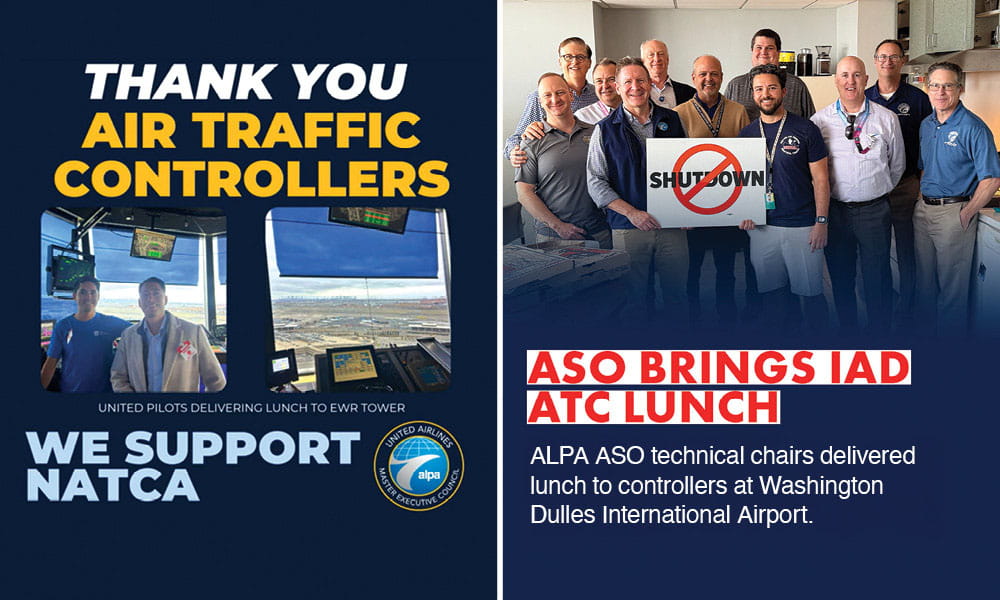 “I’m proud of ALPA members who supported colleagues across the system, from delivering meals to air traffic controllers to standing together in unity,” Ambrosi remarked. “These essential professionals play a vital role in keeping millions of passengers and tons of cargo safe every day.”