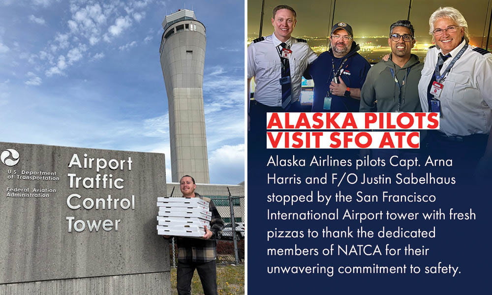 ALPA pilots championed air traffic controllers in a host of ways to demonstrate their appreciation for their fellow aviation employees, especially those working without pay who ensured flights operated safely in the United States. Association members brought pizzas for the controllers in the San Francisco International Airport tower; NorCal Approach in Mather, Calif.; and Oakland Center in Fremont, Calif. Others delivered barbeque to workers in the Minneapolis-St. Paul International Airport tower and the nearby Minneapolis TRACON facility.