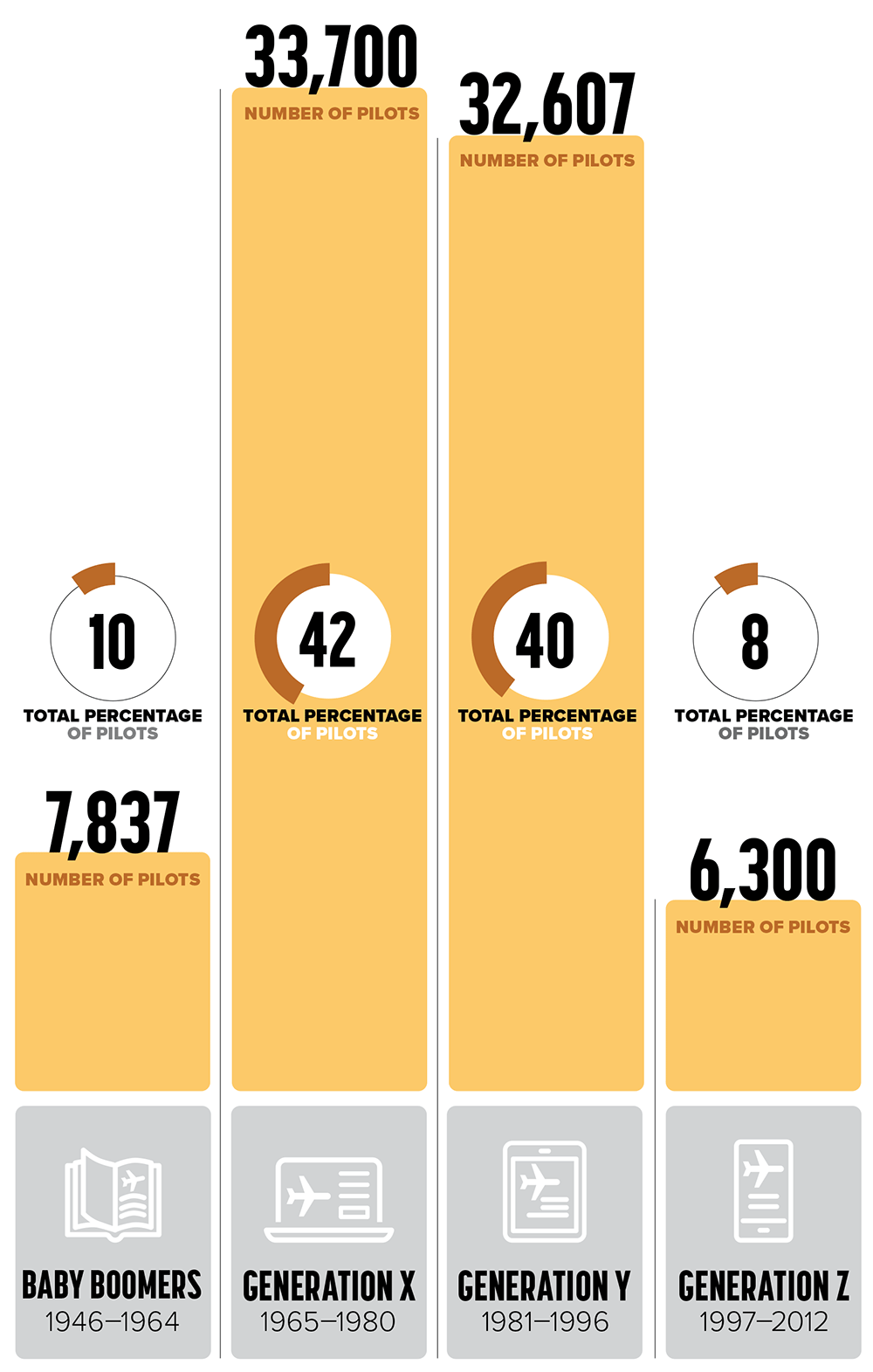 ALPA’s members today span four generations: Baby Boomers, Generation X, Generation Y (Millennials), and Generation Z*. Each brings their own expectations and perspectives, shaped by different aviation experiences, training environments, and career paths. Understanding these generational dynamics is essential to effective communication, member engagement, and long-term unity within the Association.