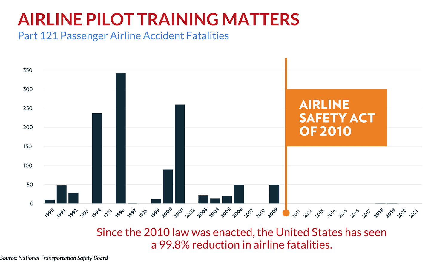 Since passing the Airline Safety Act of 2010, the United States has experienced a 99.8% reduction in airline fatalities.